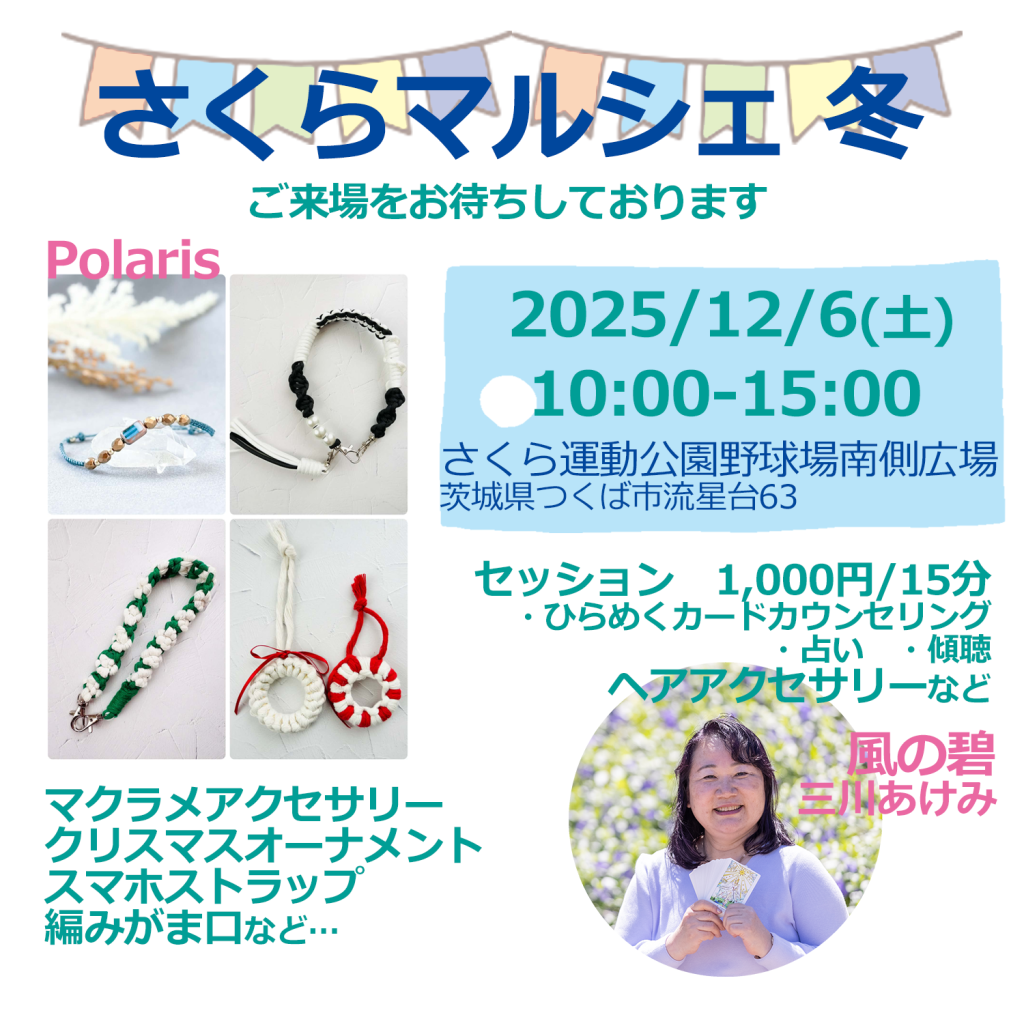 12/6(土)さくらマルシェでカウンセリング・リーディングin茨城県つくば市